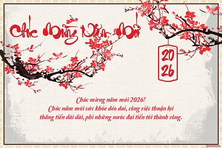 Thiệp Tết 2026 - Thiệp Tết hoa đào rực rỡ