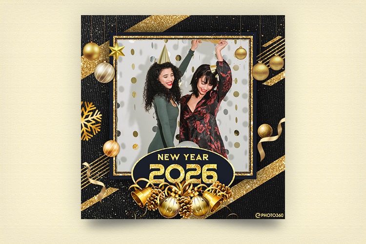 Tạo khung ảnh chúc mừng năm mới 2026 phong cách sang trọng với hình ảnh của bạn, ghép ảnh chúc năm mới dễ dàng sẽ khiến bức ảnh gốc của bạn hoặc người thân tràn ngập không khí đón Tết. Mẫu khung ảnh Tết năm mới 2026 được trang trí bởi các họa tiết lấp lánh cùng phông nền vàng huyền ảo sẽ giúp bạn có bức ảnh đón năm mới để đời cho bản thân hoặc dành tặng bạn bè trong đêm giao thừa hay những ngày đầu tiên của năm mới.